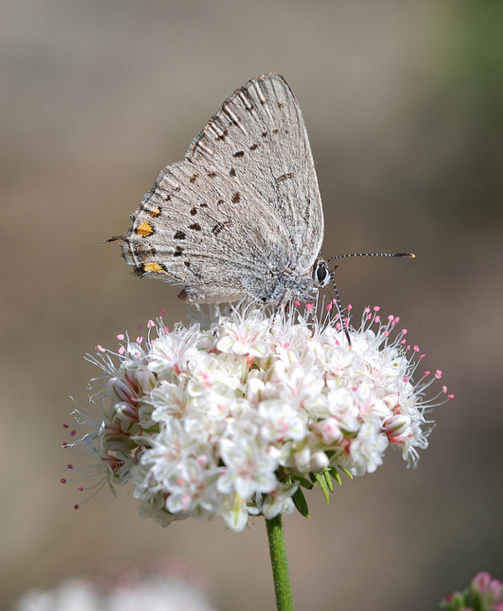 California Hairstreak (Satyrium californicum) Serviceberry, Prunus virginiana, Cercocarpus, California lilac, oak, willow, buckwheat.