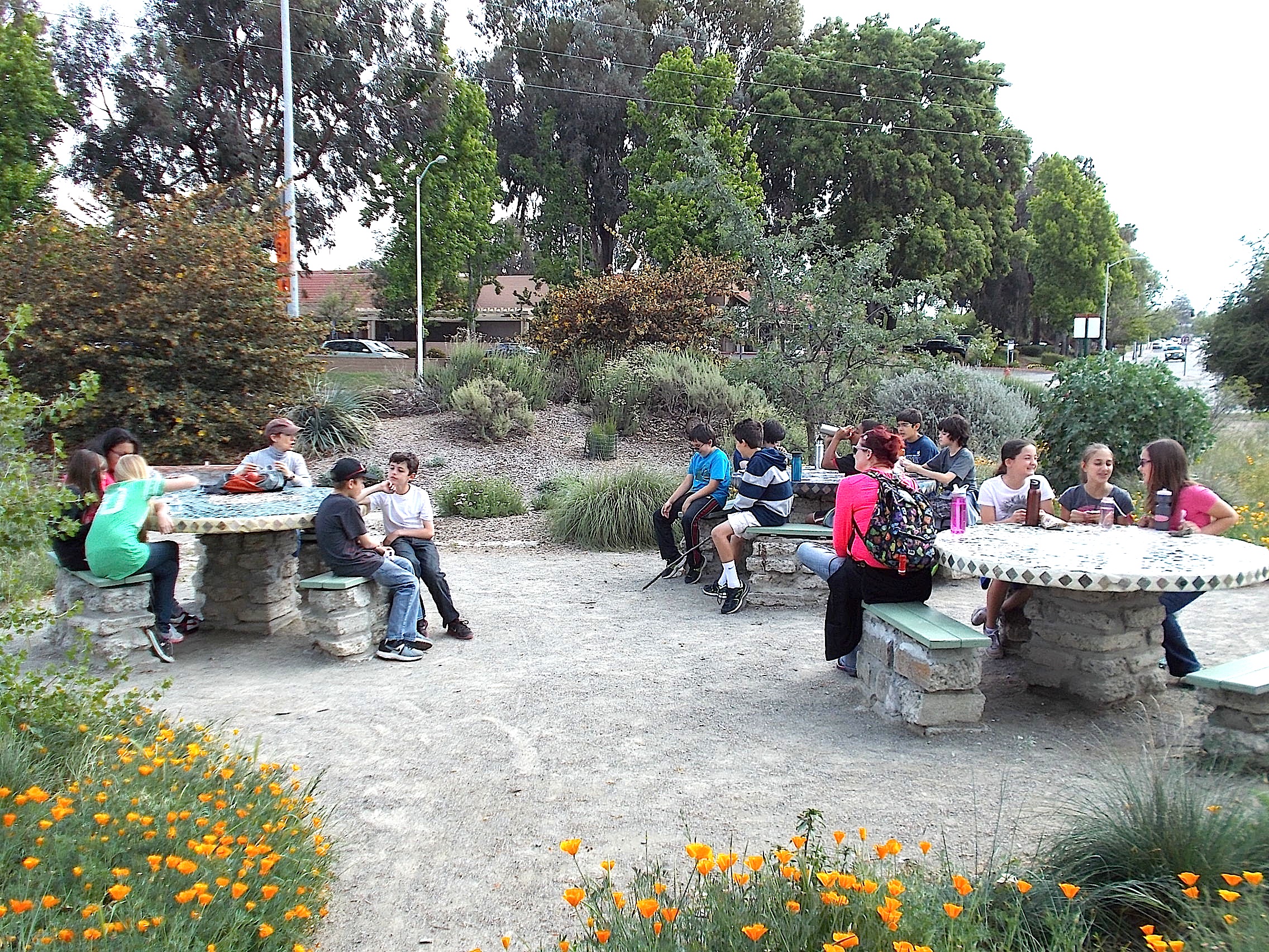 Smith School Discovers the Granada Native Garden! Recently, a class of 5th Graders from Emma C. Smith School stumbled upon the Granada Native Garden when they stopped to have lunch during a mini-field trip: “We never knew it was here!“. There they learned some things about the importance of plants to the native people who lived in California before the Europeans arrived – such as how gumplant (Grindelia sp.) had many medicinal uses, in addition to being a cheap substitute for chewing gum, owing to the sticky substance that collects in its young flowers and coats its leaves. And many of those plants are growing at the Granada Native Garden, waiting to be discovered.