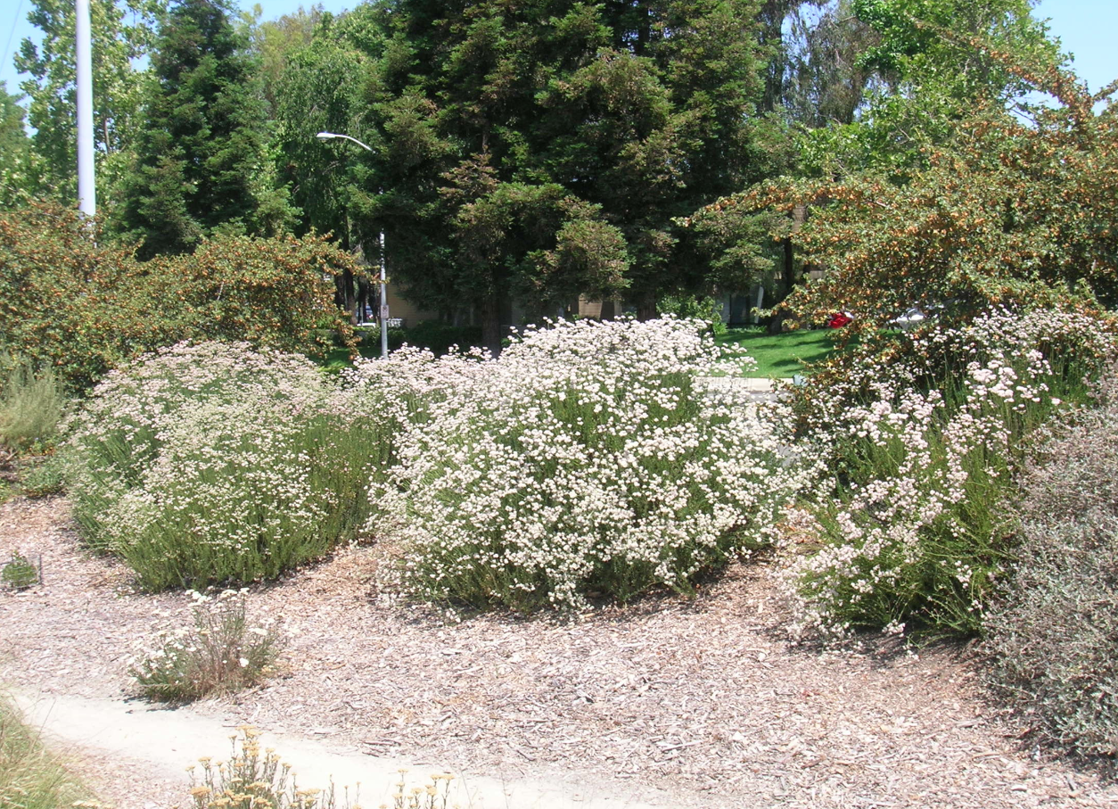 Water at the Granada Native Garden The Granada Native Garden is a 1/3-acre plot in Livermore, California, completely landscaped with native California plants. Wedged between Murrieta Blvd. and a popular bicycle and walking trail which parallels the Arroyo Mocho, it is roughly the shape of a long scalene triangle about 275 long and about 100 feet wide at its base. This particular area was a barren, trash-strewn lot before it was adopted by an army of volunteers to become a native plant garden in 2004-05. A testimony to the way a neglected piece of land can be transformed into a community asset with both aesthetic and educational value with environmental overtones, the Garden was primarily intended to be a demonstration of the kind of native California landscaping plants that can exist in the Livermore area using little or no summer water, only water that falls as rain in the winter or is present in the under-ground water table. (Note: Photos can usually be enlarged by clicking on them.)