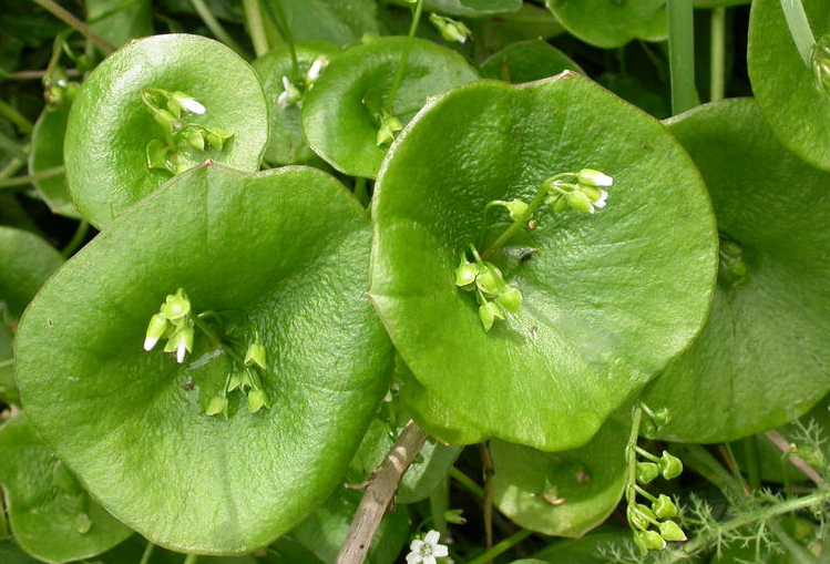 First, Why Is It Called “Miner’s Lettuce”? Miner’s lettuce was a traditional food of the Chumash Indians of California’s central and southern coastal regions. The leaves are soft and tender, resembling fresh spinach, and remind me of the expensive tasty Bibb or butter lettuce that we buy in our markets. It was eaten raw or cooked; a tea made of the leaves was used as a mild laxative or diuretic, or as an “invigorating Spring tonic”. Like other highly nutritious salad greens that we are encouraged to eat more of, the plant is rich in Vitamin C. During the Gold Rush era, it was an important way for the miners in California to avoid developing scurvy, a serious disease caused by a deficiency of that vitamin. Hence the name!