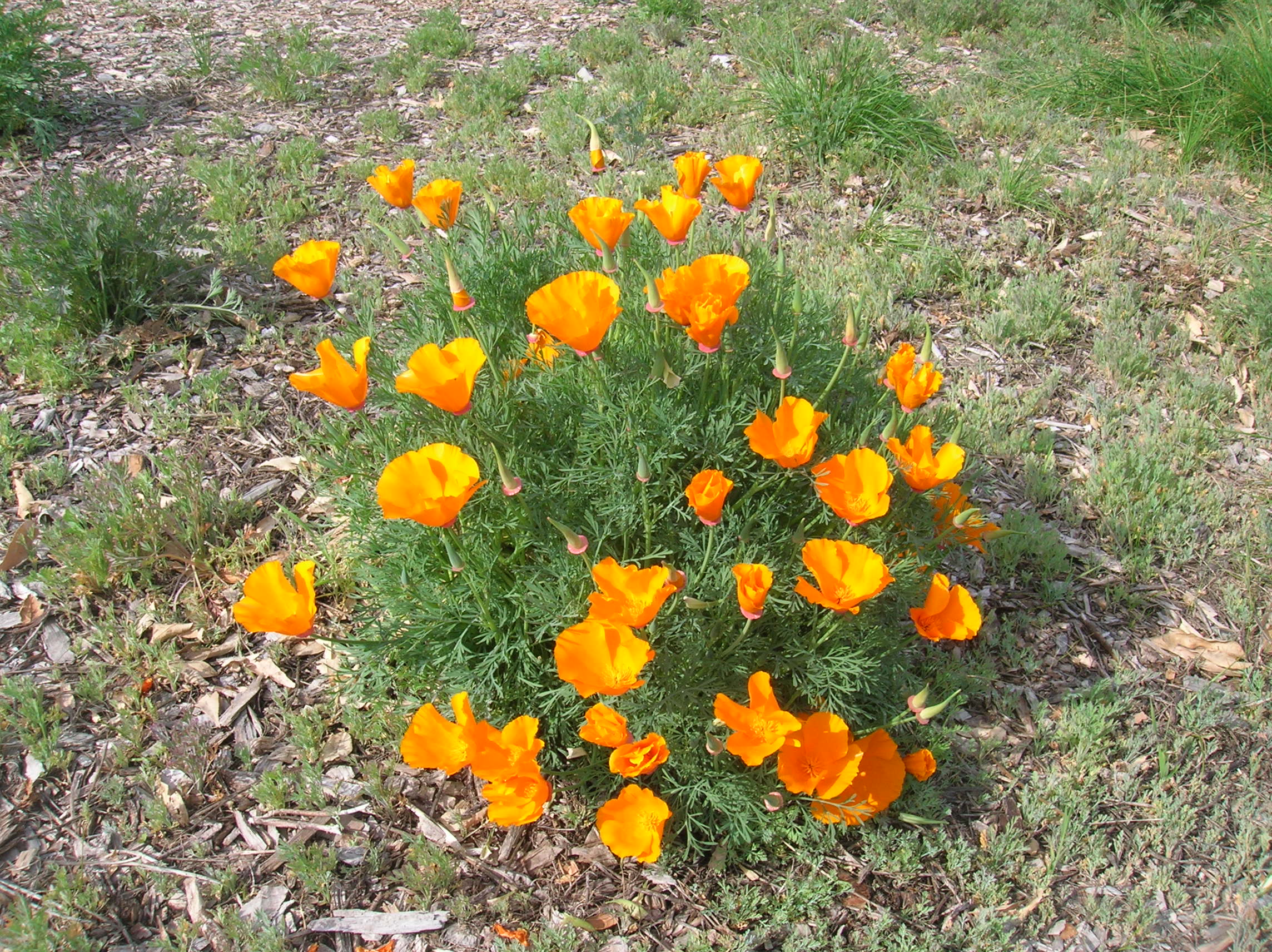 Poppies at EntranceThe Poppies Are Back!                                                                                                                 As of the end of February, the Livermore Valley had actually received about two inches less rain this year than last year.  Nonetheless, the unusually warm weather this winter, plus other climatic factors, have resulted in a lush growth of both natives and non-native weeds compared to earlier years.  (You may click the photos to enlarge them.)